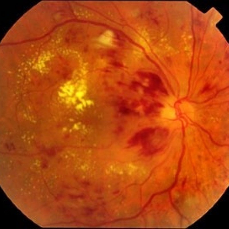 Es kann zu Blutungen in der Netzhaut, Ödembildung, Arterien–/ Venenverschlüsse, Glaskörperblutung, Netzhautablösung bis zur Erblindung kommen.