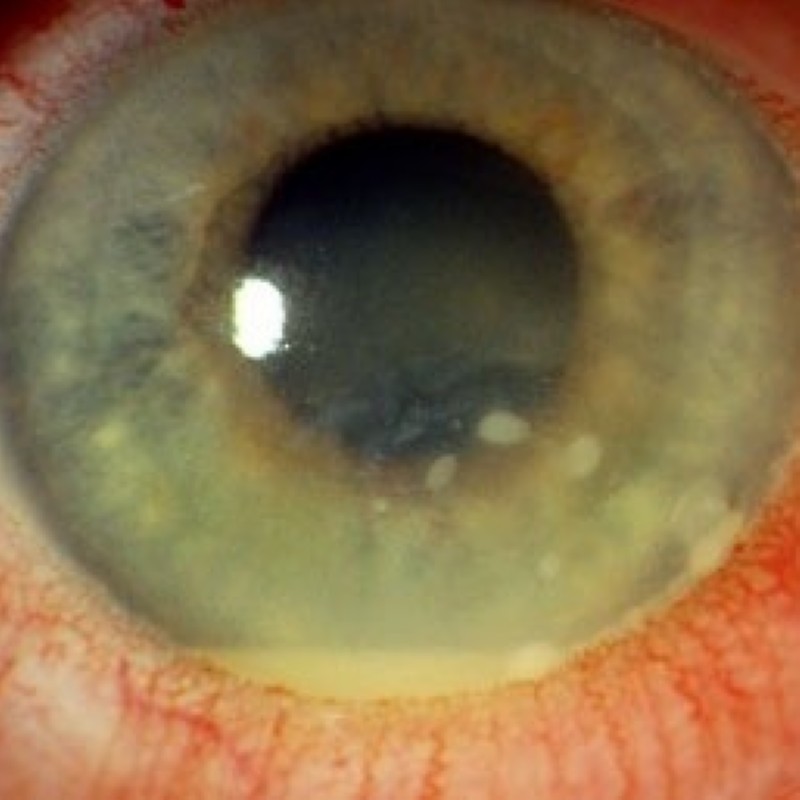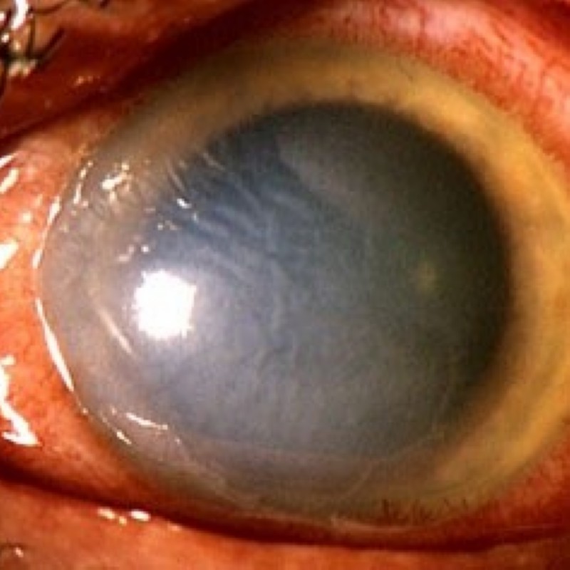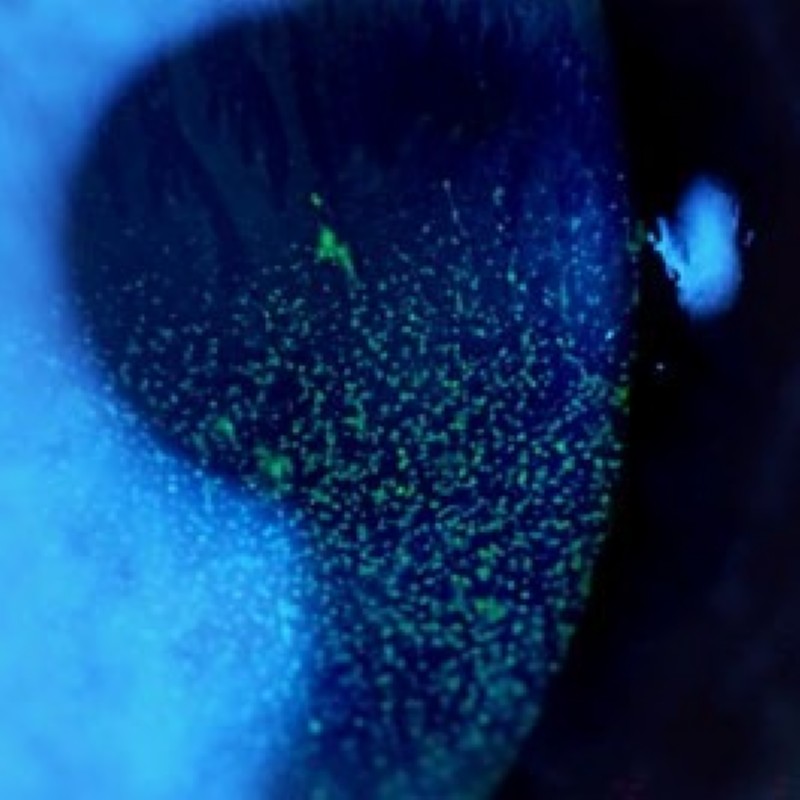 Therapie: Augentropfen, Augensalbe, Schmerztherapie bei Bedarf.