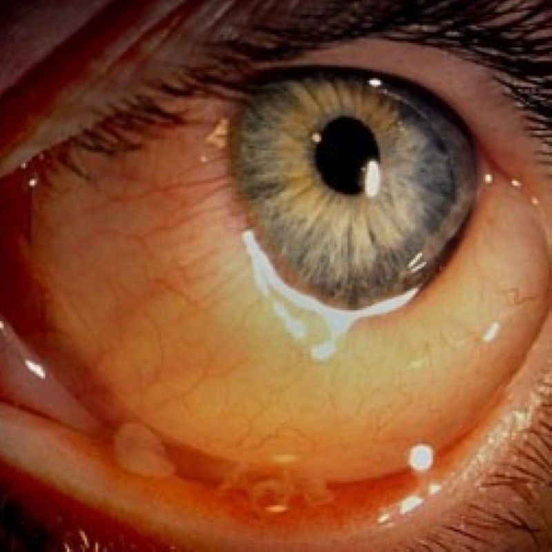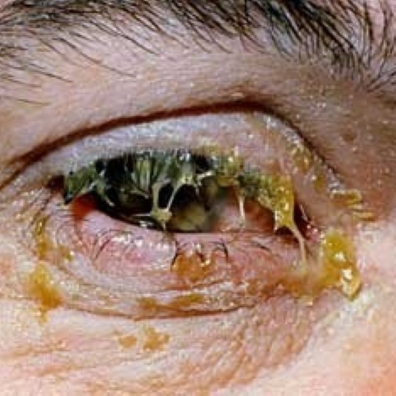 Symptome: Fremdkörpergefühl, gerötete Augen, Jucken, Brennen, Augenrinnen, Lichtempfindlichkeit, geschwollene, gerötete Lider, Druckgefühl hinter den Augen.