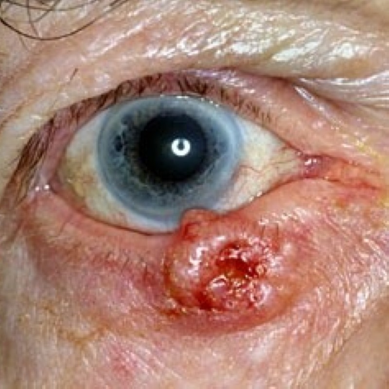 Basaliom: häufigster Tumor im Bereich des Lides. Metastasiert nicht, wächst jedoch in die Tiefe. Rechtzeitige Entfernung und histopathologische Untersuchung notwendig.