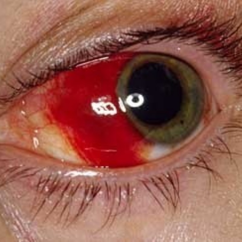 Symptome: schmerzlos, plötzlich auftretende geringe bis deutliche Rötung des Auges.
