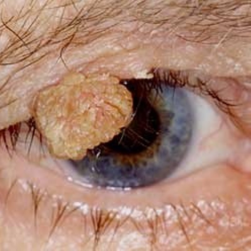 Papillom: gutartig, Operation, wenn das Sehen eingeschränkt oder kosmetisch störend.